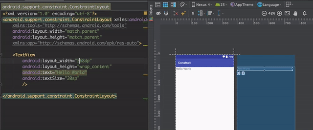 <android.support.constraint.Guideline android:id="@+id/eightDpGuideLine" android:layout_width="0dp" android:layout_height="0dp" android:orientation="vertical" app:layout_constraintGuide_begin="8dp" />